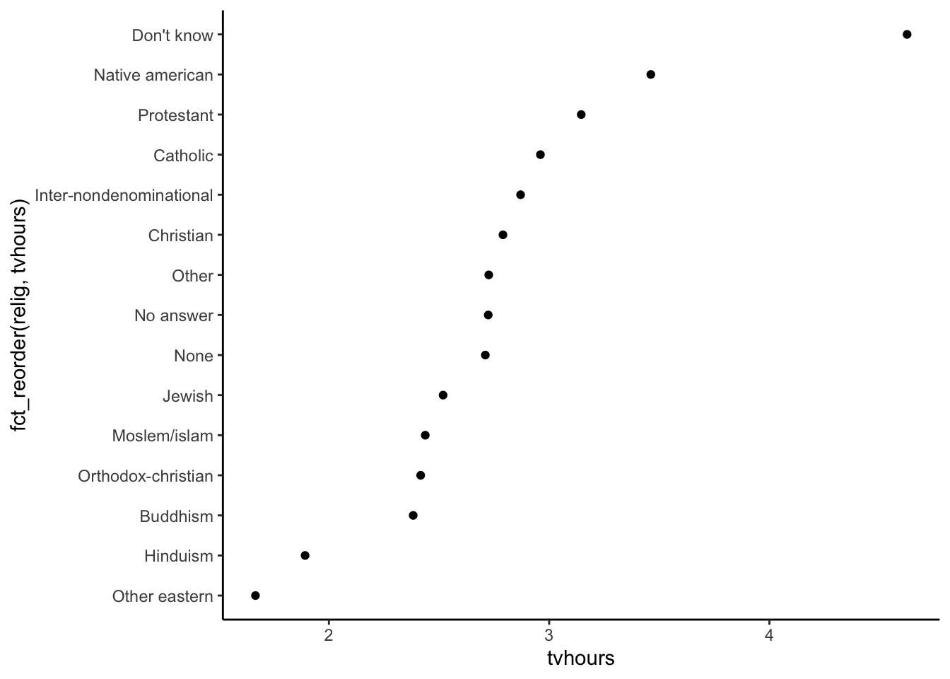 Reordering the levels of a factor can be useful in plotting when categories would benefit from being sorted in a particular way: