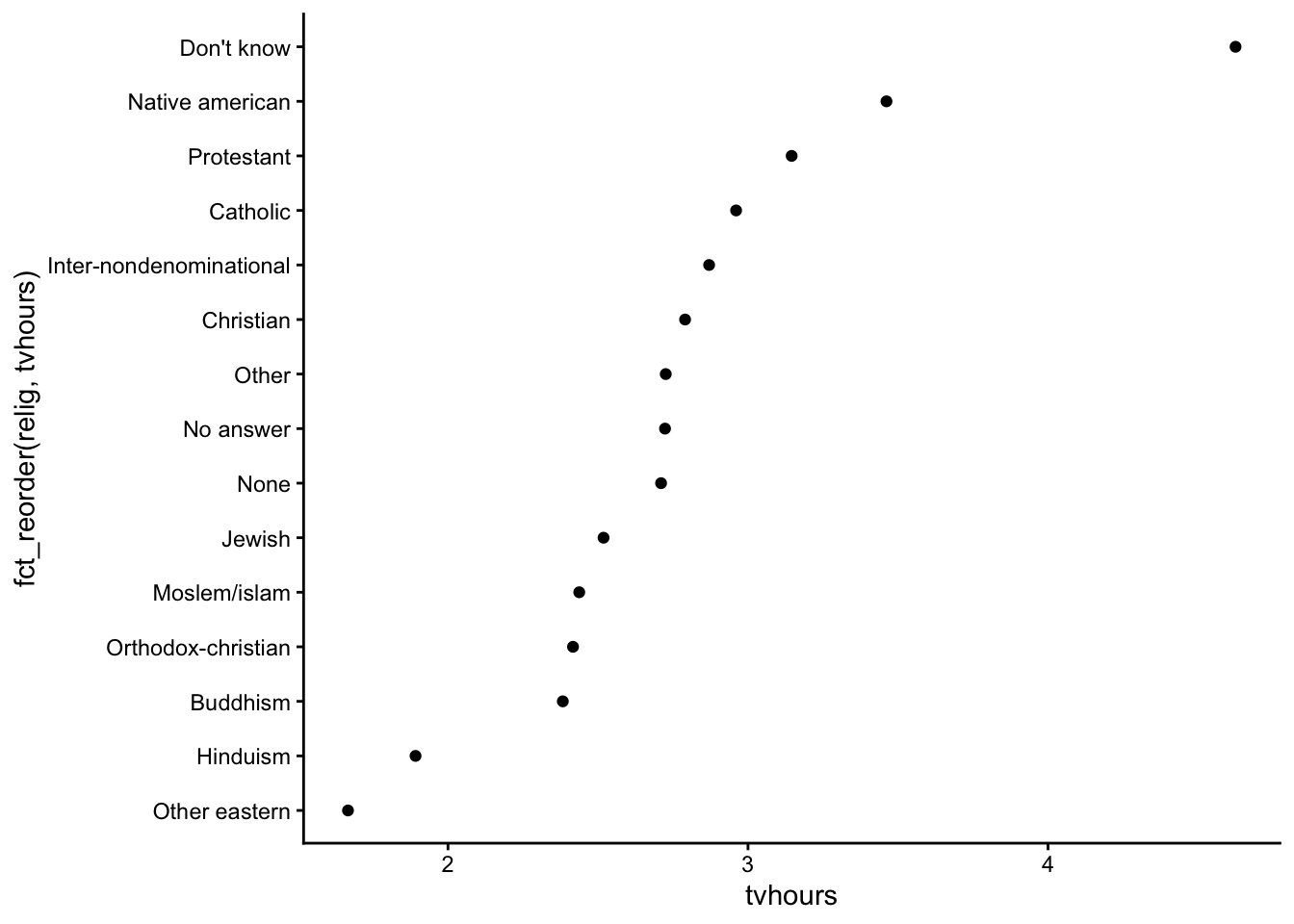Reordering the levels of a factor can be useful in plotting when categories would benefit from being sorted in a particular way: