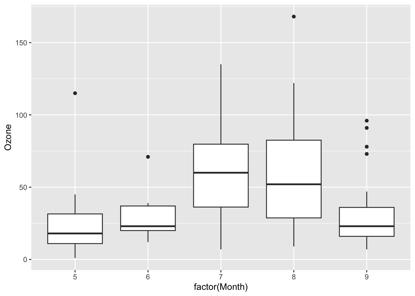 We’ll look at the airquality dataset available in base R, which gives daily air quality measurements in New York from May to September 1973. You can pull up the codebook with ?airquality in the Console.
