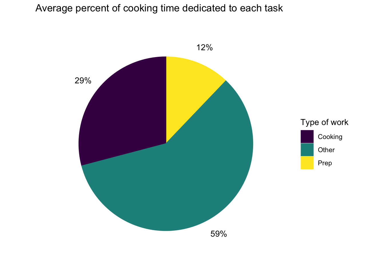 labs(fill = "Type of work", colour = "Type of work", title = "Average percent of cooking time dedicated to each task")